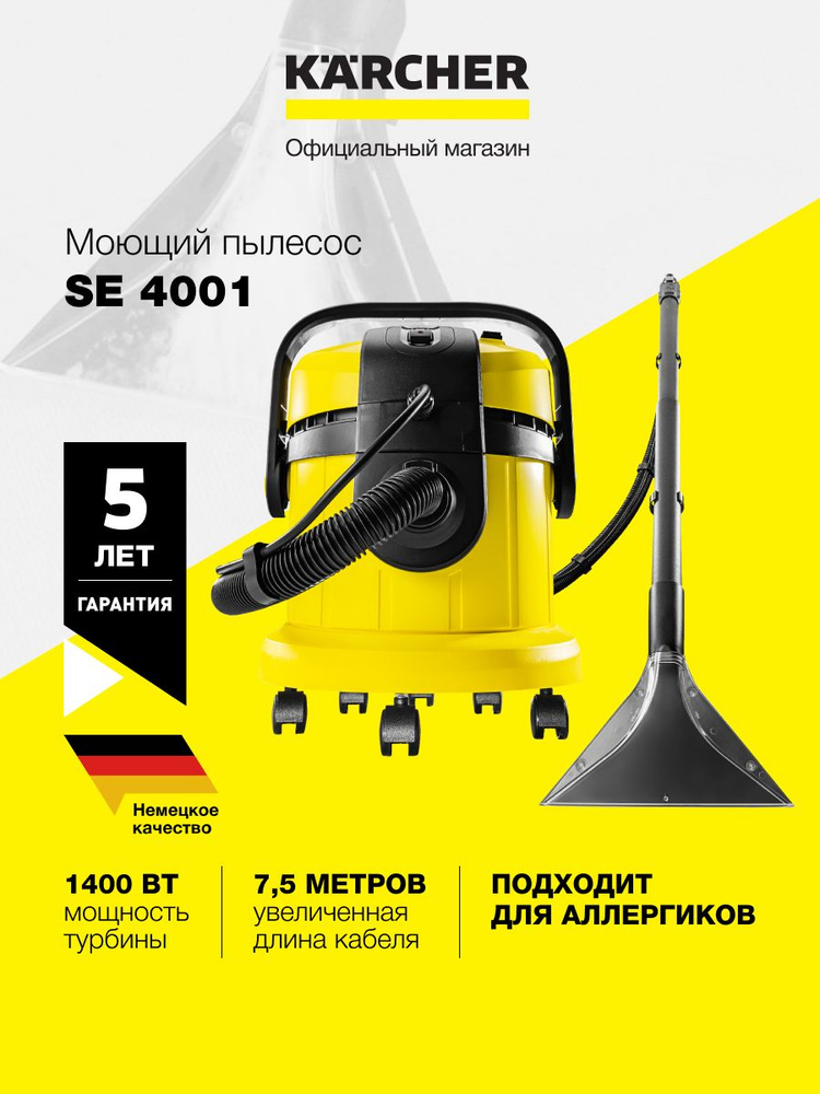 Пылесос моющий Karcher SE4001 1400Вт желтый/черный